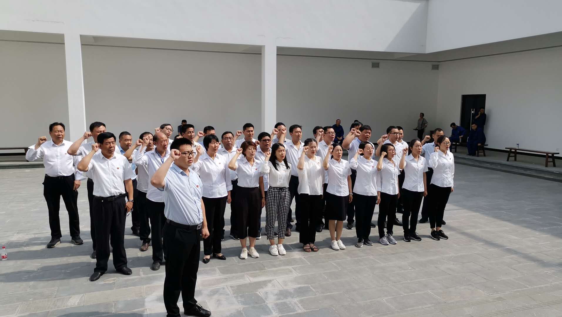 现场参观学习结束后,全体党员面对鲜红的党旗,集体宣誓,重温入党誓词,坚定理想信念,提升思想境界。