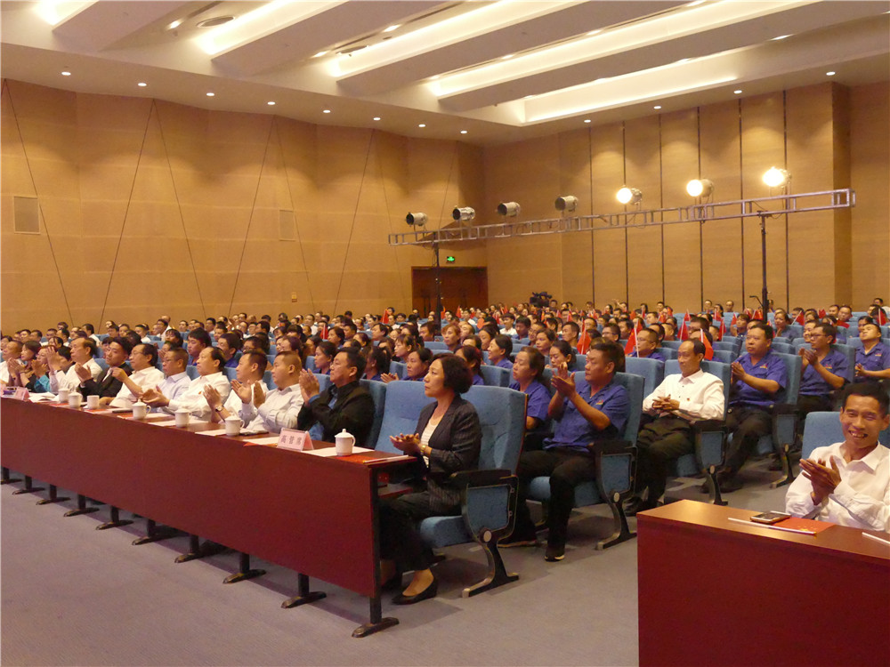在《我爱你中国》悠扬的旋律中,主持人对新中国成立、林县人民修建红旗渠、北京奥运会赛场称雄、林州重机上市、党的十九大召开等国家、林州和公司重大历史往事进行回顾,使全场感受到了新中国70年的伟大成就。