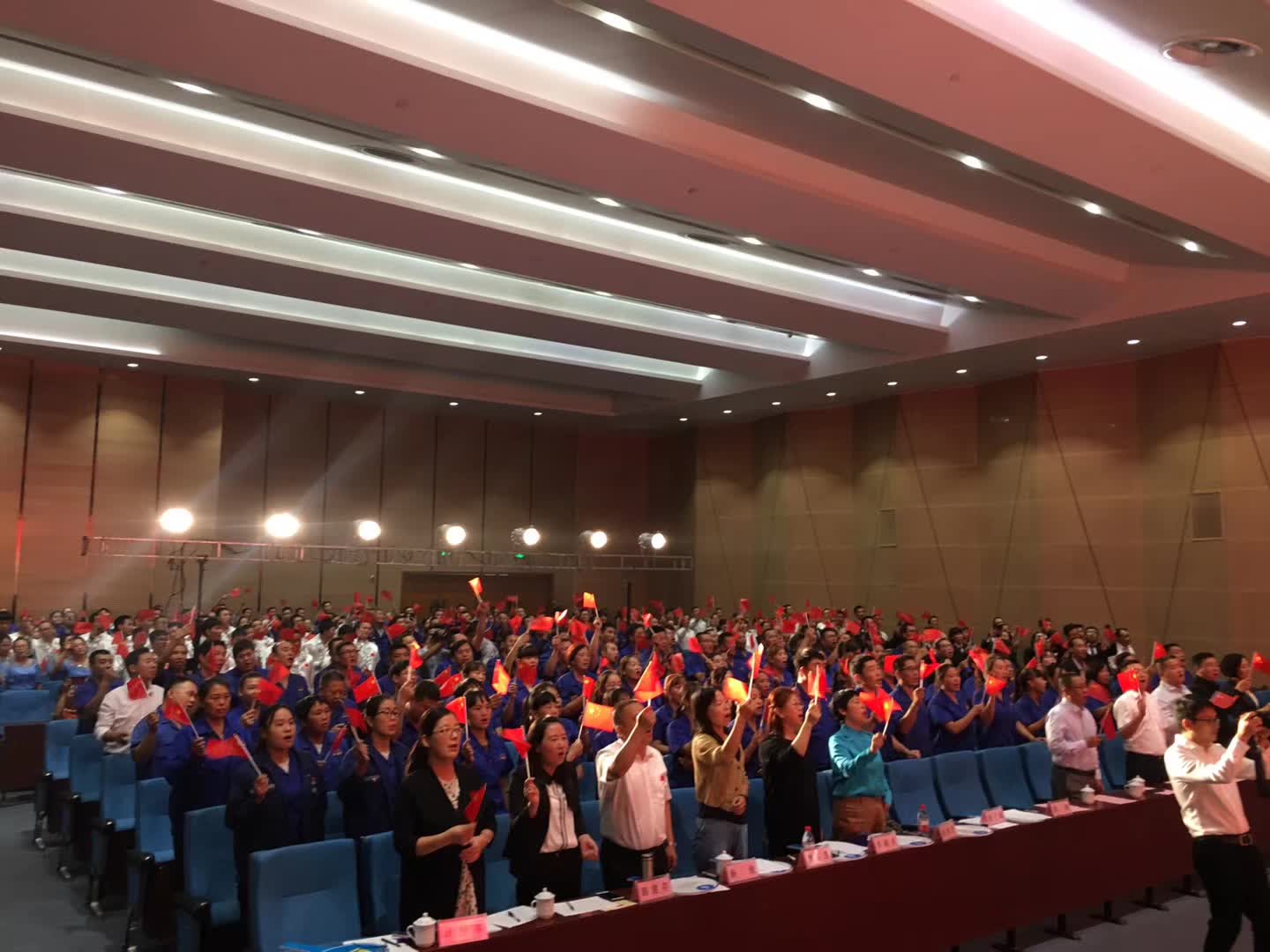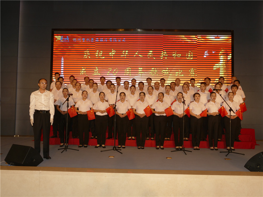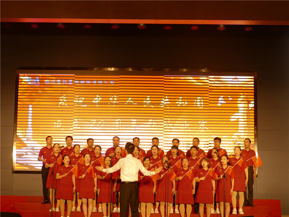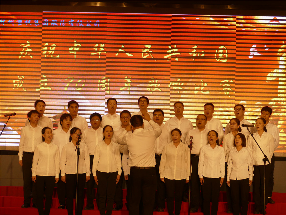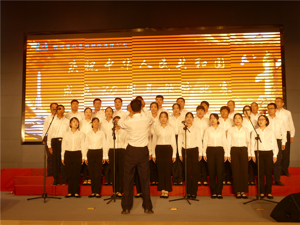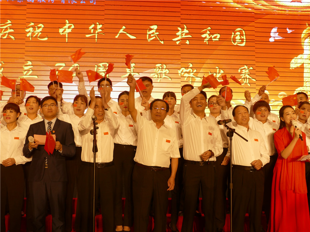活动在全体合唱《歌唱祖国》的歌声中达到高潮。集团公司主要领导登台同全场员工舞动起鲜艳的五星红旗,共同歌唱祖国,歌唱美好的新时代。
