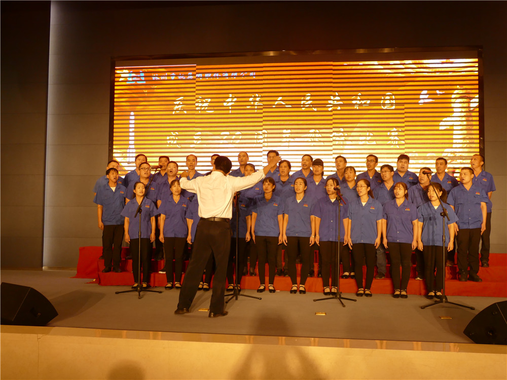 2019年9月29日下午2时,林州重机多功能厅内灯光璀璨、红旗招展。ky开元重机集团庆祝中华人民共和国成立70周年歌咏比赛在此隆重举行。集团公司党委书记、董事长郭现生,董事、总经理郭钏等高管和十二支代表队共400余人欢聚一堂,通过美好的歌声,献礼祖国的70华诞,献礼奋进的新时代。