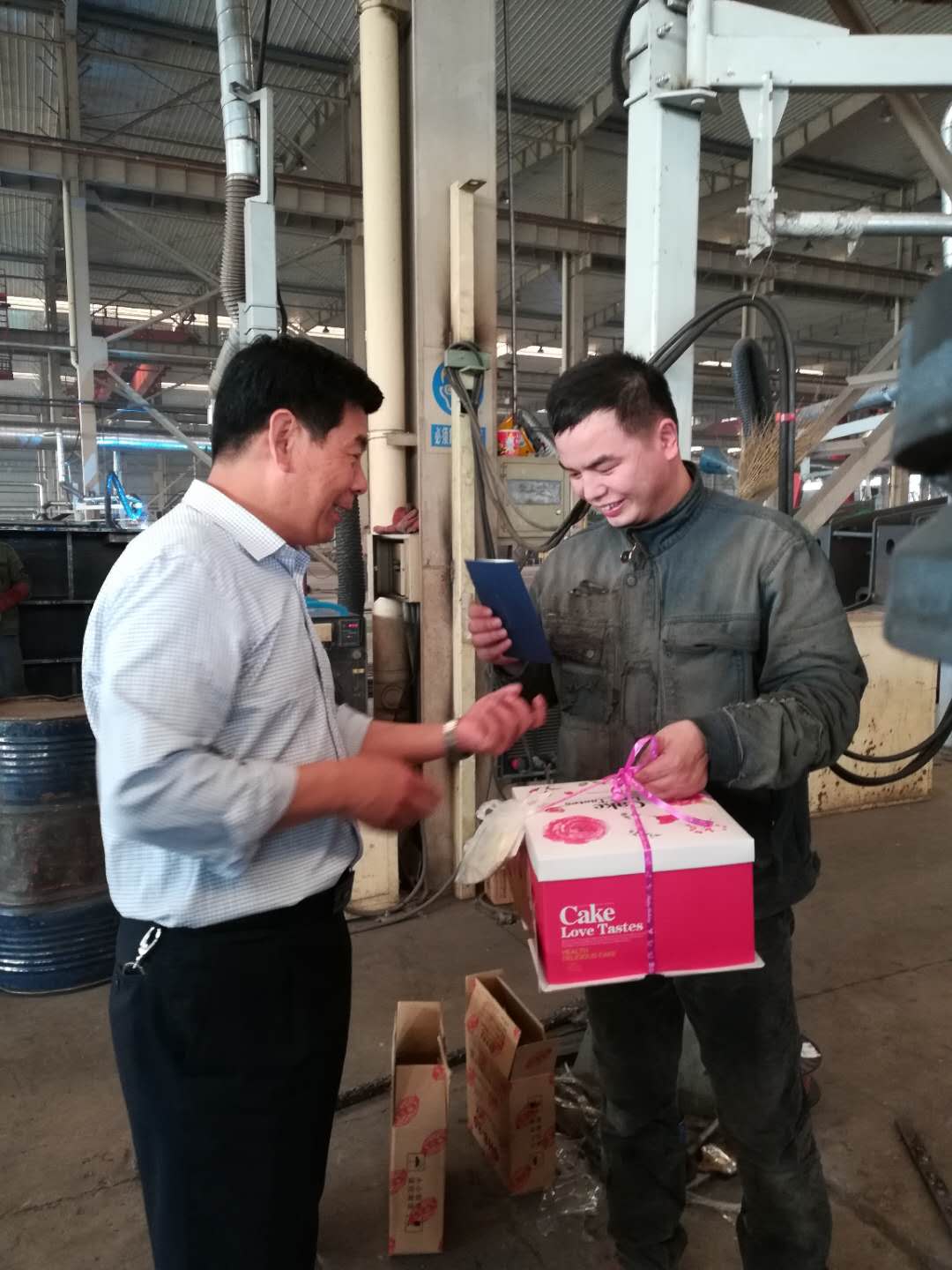5月10日上午8时许,公司工会主席路建存携带生日蛋糕和生日贺卡走进车间,亲自将生日礼物送到当天过生日的员工手中,并代表公司董事长、总经理表示生日祝贺。当路主席把生日蛋糕送到员工手中时,他们感到非常惊讶,有的员工本人都不记得今天是自己生日,而公司把生日礼物送到了手中,员工们激动的说:非常感谢公司领导的关怀。
