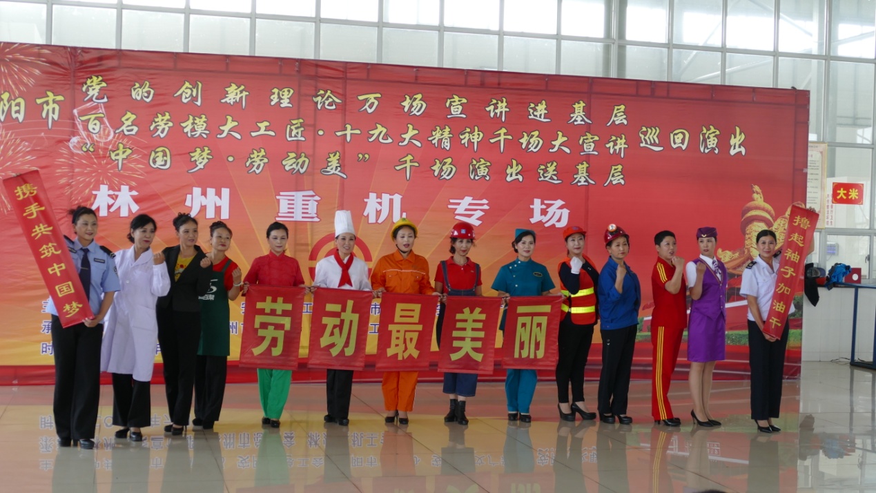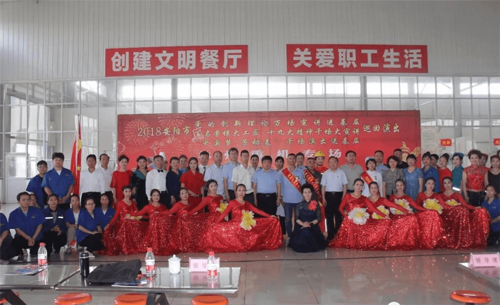 6月6日下午,安阳市党的创新理论万场宣讲进基层、百名劳模大工匠•十九大精神千场大宣讲暨“中国梦 劳动美”千场演出送基层巡回演出活动走进林州重机。河南省委宣传部副部长尹书博,省委宣传部理论处副处长杨小强,省委宣传部理论教育讲师团副团长赵琳,安阳市委宣传部副部长冀晓东,安阳市委宣传部理论科长龙晨曦,安阳市总工会宣教部部长张艾敏,林州市委常委、宣传部长王献青,林州市总工会主席栗旺生,副主席张晓云, 公司党委副书记、副总经理赵正斌,党委委员、工会主席路建存及职工代表300余人等出席活动。